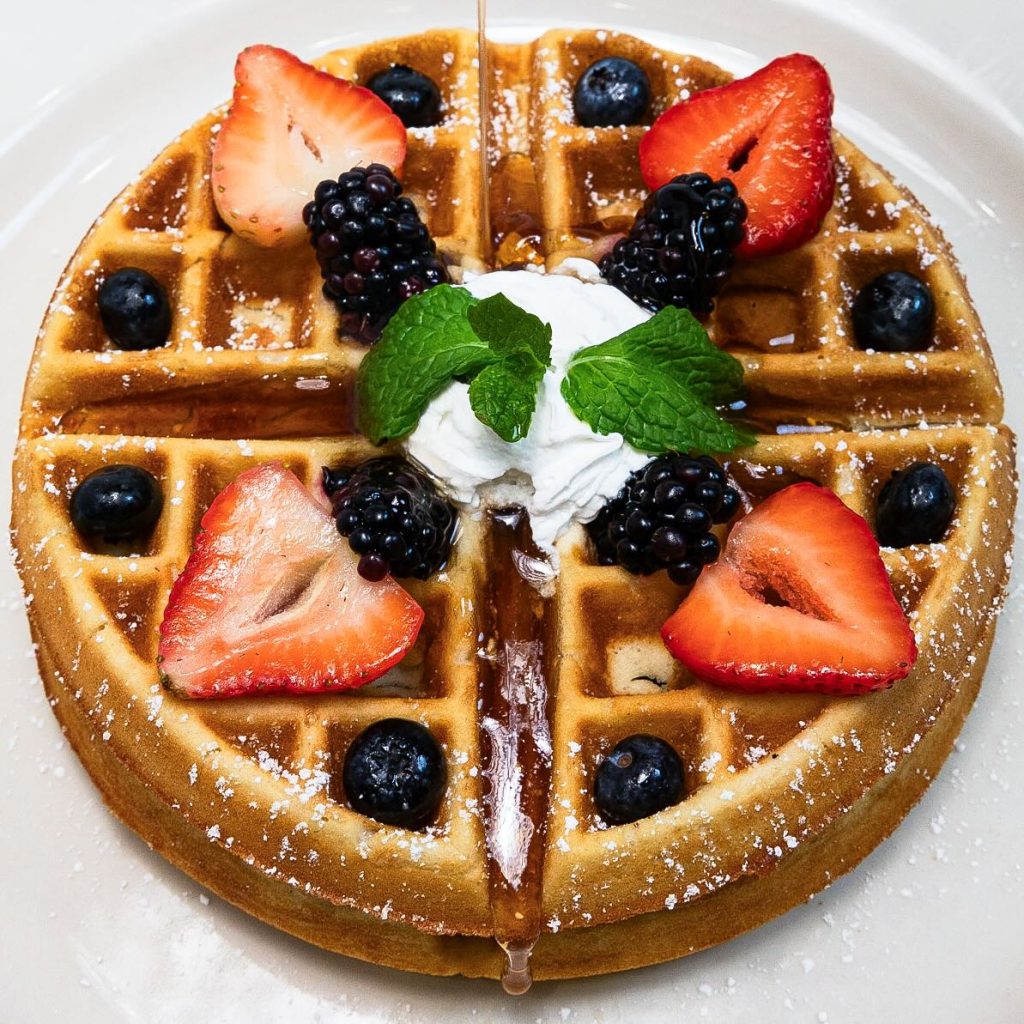 Buttermilk waffle with organic 100% Maple syrup and whipped butter